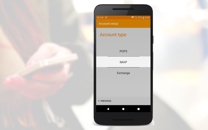 5. Select Account Type as "IMAP" in the list of POP3, Exchange.